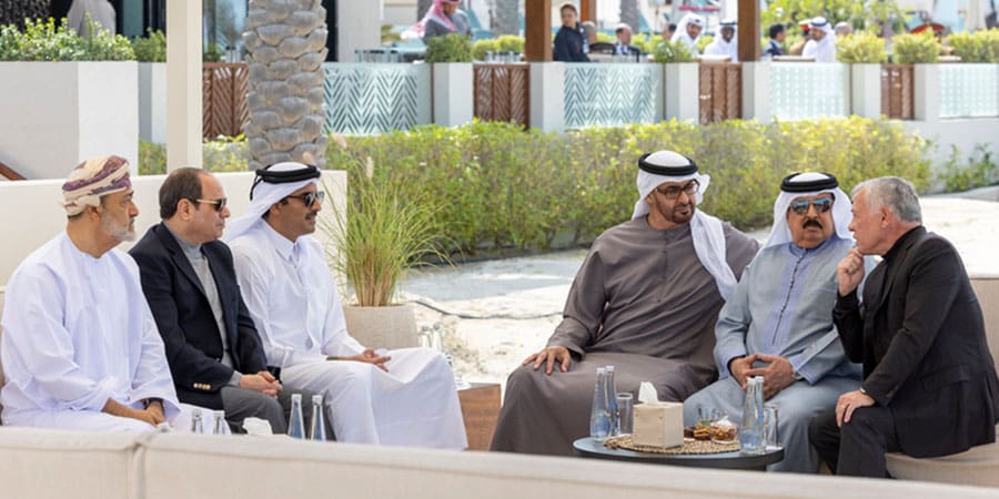 شارك حضرةُ صاحبِ الجلالةِ السُّلطان هيثم بن طارق المعظم ـ حفظهُ اللهُ ورعاهُ ـ في اللقاء الأخويِّ لعددٍ من أصحاب الجلالةِ والفخامةِ والسُّمُوِّ قادةِ دول مجلس التعاون لدول الخليج العربية والمملكة الأردنية الهاشمية وجمهورية مصر العربية الذي عُقد بالعاصمة الإماراتية أبوظبي مساء اليوم.