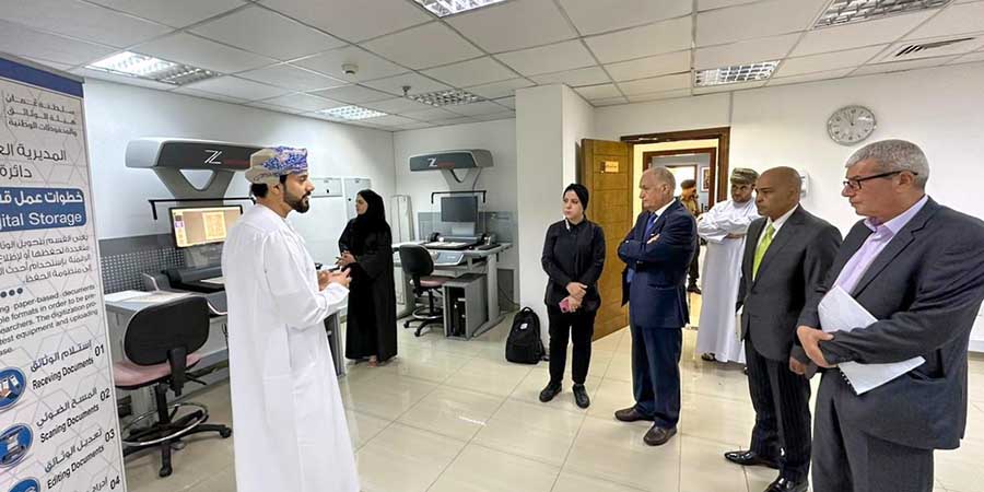 واطلع الوفد خلال زيارته لهيئة الوثائق والمحفوظات الوطنية على تجربة السلطنة في مجال إدارة الوثائق وحفظها وإدارة المستندات والوثائق الإلكترونية.