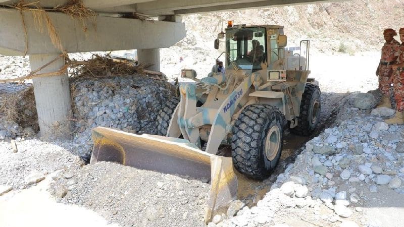 كما قامت أيضًا بمتطلبات المسح الفني للطرق المتأثرة وإزالة بعض الأشجار والمخلفات العالقة في مجاري الأودية، حيث تواصل وحدات الخدمات الهندسية بدورها تقديم الدعم الفني و الإسناد الهندسي لمختلف الأماكن المتضررة خاصةً عمليات إعادة فتح الطرق بين القرى والولايات في المحافظة.