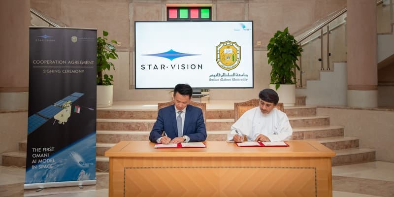 وقّعت جامعة السُّلطان قابوس اليوم على اتفاقية تعاونٍ مع شركة ستارفيجين الصينية للأقمار الصناعية وتكنولوجيا الذكاء الاصطناعي لإطلاق أوّل نموذجٍ عمانيٍّ للذكاء الاصطناعي إلى الفضاء.