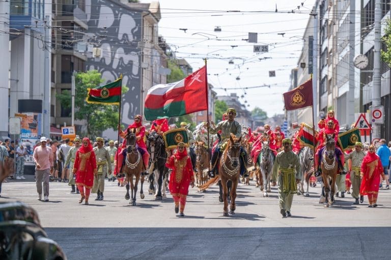 شاركت الخيالة السُّلطانية بشؤون البلاط السُّلطاني والحرس السُّلطاني العُماني في مسير تاتو بازل الذي انطلق من وسط مدينة بازل السويسرية مرورًا بنهر الراين ضمن الفعاليات المصاحبة لعرض تاتو بازل للموسيقى العسكرية ٢٠٢٣م.