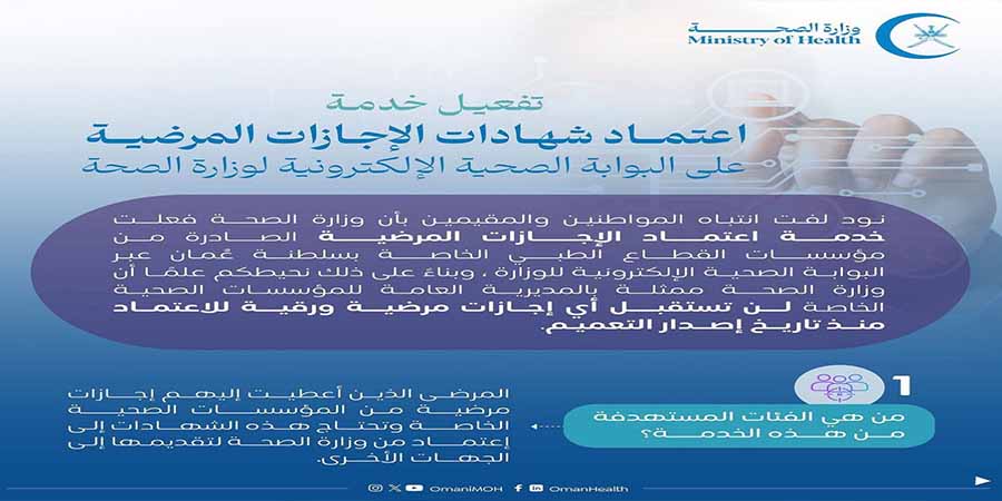 ضيف برنامج (كل الأسئلة) مع خلود العلوية، وحيد المسكري رئيس قسم المعلومات والاحصاء – بالمديرية العامة للمؤسسات الصحية الخاصة، ضيف برنامج كل الأسئلة مع خلود العلوية، للحديث عن هذه الخدمة التي تم تفعيلها في البوابة الصحية الإلكترونية بوزارة الصحة.