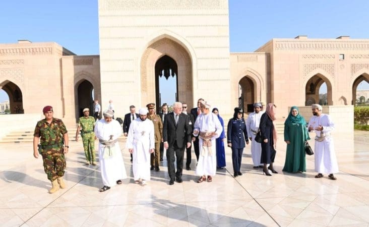 قام فخامةُ الرئيس الدكتور فرانك فالتر شتاينماير رئيس جمهورية ألمانيا الاتحادية وحرمُه اليوم بزيارة جامع السُّلطان قابوس الأكبر، في إطار زيارته الرسميّة الحالية لسلطنة عُمان.