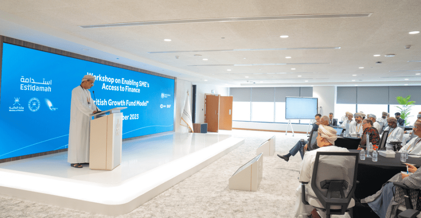 عقَدَ البرنامجُ الوطني للاستدامة المالية وتطوير القطاع المالي “استدامة” بالشراكة مع البنك المركزي العُماني وفريق التشاور الاستراتيجي العُماني البريطاني، اليوم حلقة عمل مع صندوق النمو البريطاني بشأن استكشاف خيارات مبتكرة لتمويل الشركات الصغيرة والمتوسطة.