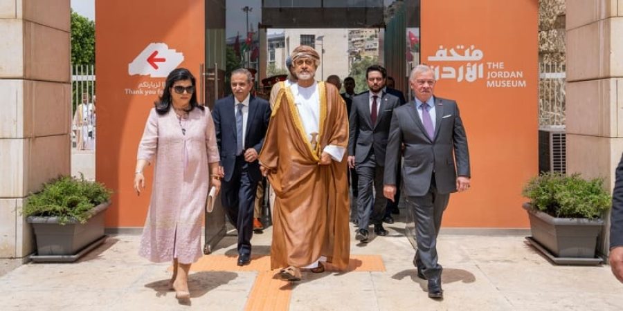تفضّل حضرةُ صاحبِ الجلالةِ السُّلطان هيثم بن طارق المعظم – حفظه الله ورعاه – يرافقه أخوه جلالة الملك عبدالله الثاني ابن الحسين ملك المملكة الأردنية الهاشمية بزيارةٍ إلى متحف الأردن بالعاصمة عَمّان صباح اليوم، في إطار زيارة “دولة” يقوم بها جلالة السُّلطان إلى المملكة.اطَّلع جلالته – أعزّه الله – خلال جولته على ما يعرضُه المتحف من مقتنيات أثرية كتمثال عين غزال الذي يعد من أقدم التماثيل البشرية في العالم، وغيرها الكثير من المكتشفات التاريخية القيّمة باستخدام أساليب عرض متحفي تفاعلي.كما اطّلع – أيده الله – على أهمية ما يعرضه المتحف من نماذج الابتكار والإبداع الإنساني لمواجهة التحديات الحياتية والبيئية.قد تجوَّل جلالة سُلطان البلاد المفدى في أروقة متحف الأردن، مستمعًا – أيّده الله – إلى شرحٍ متكامل عمّا يحتويه من أقسام تسرد حكاية مليون ونصف مليون سنة من الوجود البشري والإرث التاريخي على أرض الأردن، من العصر الحجري القديم حتى الزمن الحاضر من خلال عرضها في قاعات التسلسل التاريخي.في ختام زيارة جلالة السُّلطان المعظم – حفظهُ اللهُ ورعاهُ – للمتحف تفضّل – أيّده الله – بتسجيل كلمة في سجلّ كبار الزوّار للمتحف أعرب فيها عن سروره بزيارة المتحف وبما يضمُّه من مقتنيات وآثار تروي تاريخ الأردن العريق.قد تقبّل جلالته – أيده الله – هدية تذكارية من القائمين على متحف الأردن.