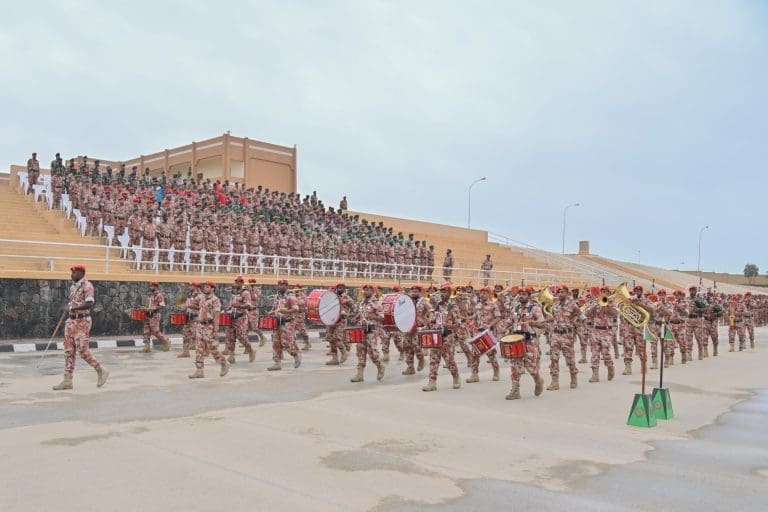 عقب ذلك ردد الخريجون نشيد “فلتسلمي عُمان”، وأدّوا نداء التأييد، وهتفوا ثلاثًا بحياة حضرة صاحب الجلالة السلطان هيثم بن طارق المعظم القائد الأعلى – حفظه الله ورعاه -، ثم تقدم قائد الطابور مستأذنًا سموَّه بالانصراف.