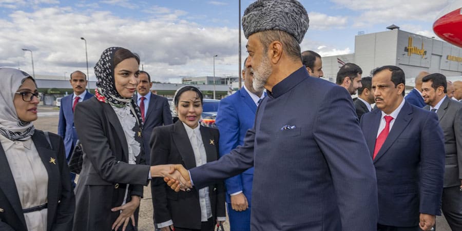 وصل -بحفظ الله تعالى ورعايته- حضرةُ صاحبِ الجلالة السُّلطان هيثم بن طارق المعظّم -أيّده الله- إلى المملكة المتحدة الصديقة اليوم في زيارة تستغرق عدة أيام؛ يقدم جلالته خلالها التعازي في وفاة الملكة إليزابيث الثانية، والتهنئة لجلالة الملك تشارلز الثالث ملك المملكة المتحدة لبريطانيا العظمى وأيرلندا الشمالية ورئيس الكومنولث؛ بمناسبة اعتلائه العرش في المملكة.
