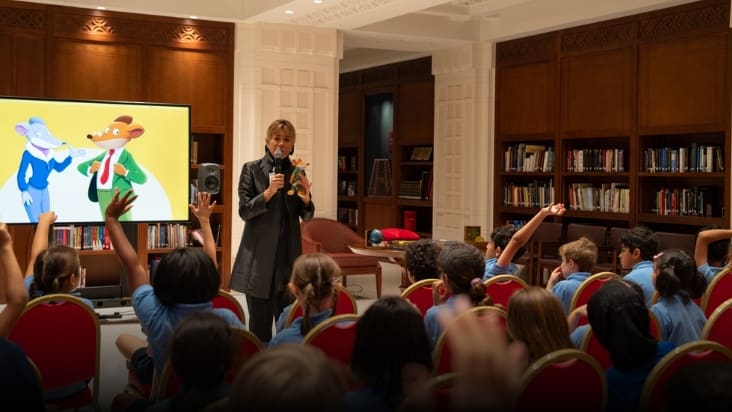 أتاحت هذه الجلسات التفاعلية، التي عقدت يومي 6 و7 نوفمبر الجاري، في المكتبة الموسيقية بالأوبرا السُّلطانية-دار الفنون الموسيقية، فرصة التعرّف على قصة جيرونيمو ستيلتون واستكشاف فن سرد القصص مع الكاتبة نفسها، للطلاب من مختلف المدارس، وقد وفّرت دار الأوبرا السُّلطانية لغة الإشارة والترجمة الفورية من العربية إلى الإنجليزية لجميع الحاضرين.