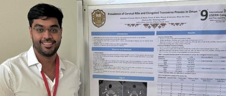 عبدالله بن محمد اللواتي – طالب في كلية الطب والعلوم الصحية، ضيف خلود العلوية، للحديث عن انتشار الأضلاع العنقية في المجتمع العًماني، والأعراض المصاحبة له، وكذلك الحديث عن تفاصيل هذه المشاركة.