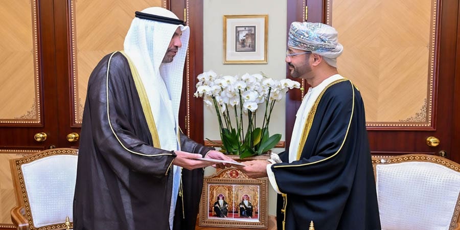 تسلّم الرسالة معالي السّيد بدر بن حمد البوسعيدي وزير الخارجية خلال استقباله بمسقط مساء اليوم معالي عبدالله علي عبدالله اليحيا وزير الخارجية مبعوث أمير دولة الكويت.