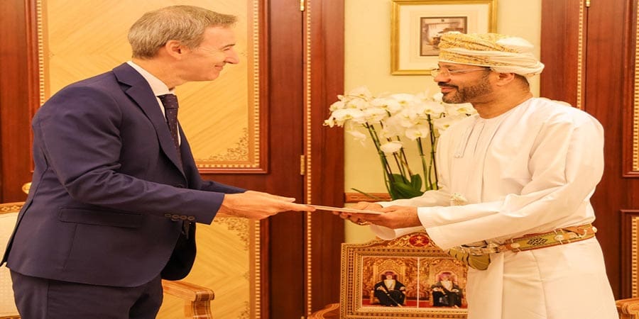 معالي السّيد بدر بن حمد البوسعيدي وزير الخارجية، خلال استقباله اليوم سعادة فرانسيسكو خافيير دي استوريز سفير مملكة إسبانيا المعتمد لدى سلطنة عُمان.
