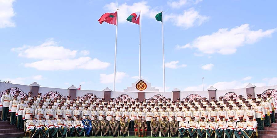 ردد الخريجون نشيد الجيش السلطاني العُماني، وأدوا قسم الولاء ونداء التأييد، وهتفوا ثلاثًا بحياة حضرة صاحب الجلالة السلطان هيثم بن طارق المعظم القائد الأعلى -حفظه الله ورعاه – كما أدى طابور الخريجين التحية العسكرية، وعزفت الموسيقى السلام السلطاني، وتقدم قائد الطابور، مستأذنًا معاليه بالانصراف، حيث مر الطابور من أمام المنصة الرئيسية مؤديًا التحية العسكرية لمعالي الفريق أول وزير المكتب السلطاني راعي الاحتفال.