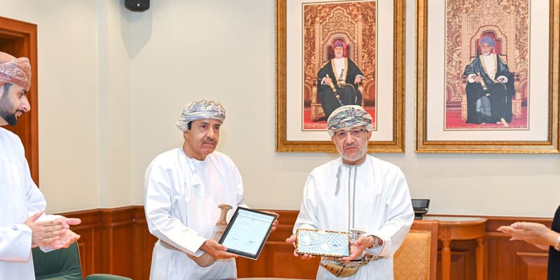 معالي سالم بن محمد المحروقي وزير التراث والسياحة، وسعادة الدكتور حمد بن محمد الضوياني رئيس هيئة الوثائق والمحفوظات الوطنية.