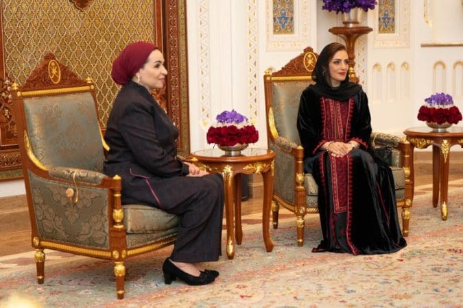 عقدت السّيدةَ الجليلةَ حرمَ جلالةِ السُّلطان المعظم- حفظهَا اللهُ ورعاهَا- والسّيدةُ انتصار السيسي حرمُ فخامة رئيس جمهورية مصر العربية لقاءً وديًّا بقصر العلم العامر صباح اليوم.