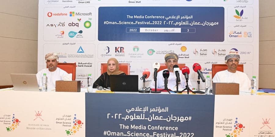 نظمت وزارة التربية والتعليم اليوم المؤتمر الإعلامي مهرجان عُمان للعلوم ٢٠٢٢ في نسخته الثالثة بحضور سعادة الدكتور عبد الله بن خميس أمبوسعيدي وكيل وزارة التربية والتعليم للتعليم، وأعضاء اللجنة الرئيسة والمؤسسات الإعلامية بالسلطنة، وذلك بقاعة الأدهم بفندق كراون بلازا مسقط (OCEC).