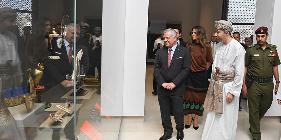 زار جلالة الملك عبدالله الثاني ابن الحسين، ملك المملكة الأردنية الهاشمية، وحرمه جلالة الملكة رانيا العبدالله، وسمو الأمير الحسين بن عبدالله الثاني ولي العهد، اليوم المتحف الوطني في إطار زيارة رسمية يقوم بها جلالته إلى سلطنة عُمان. وكان في استقبال جلالة الملك سعادة جمال بن حسن الموسوي، الأمين العام للمتحف الوطني، وعدد من المسؤولين بالمتحف.