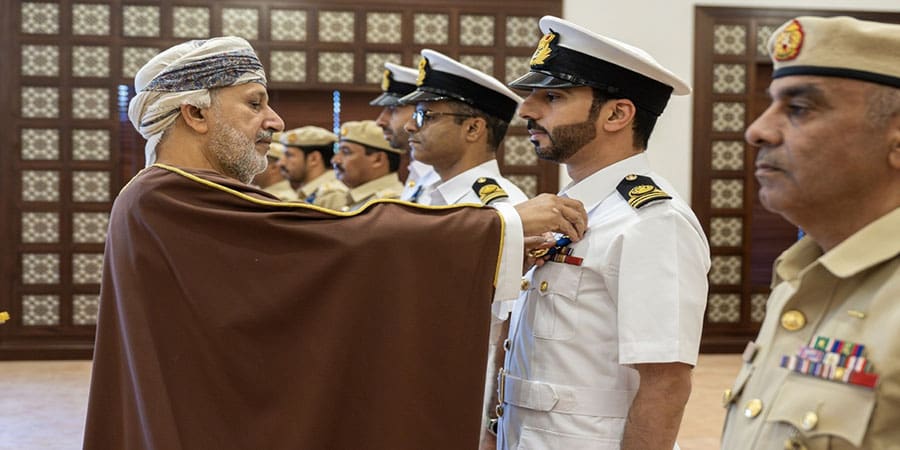 تفضّل حضرةُ صاحبِ الجلالةِ السُّلطان هيثم بن طارق المعظم القائدُ الأعلى ـ حفظهُ اللهُ ورعاهُ ـ فأنعم على عددٍ من الضُّبّاط وضُبّاط الصفّ بشؤون البلاط السُّلطاني بميداليتي الخدمة الممتازة والثناء السُّلطاني تزامنًا مع احتفالات البلاد بذكرى تولّي جلالتِه مقاليد الحكم.