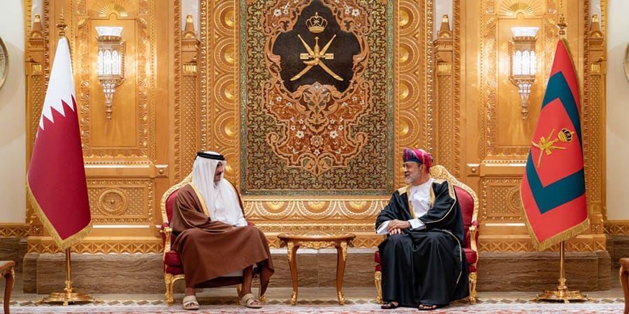 عقد حضرةُ صاحبِ الجلالةِ السُّلطان هيثم بن طارق المعظم وأخوه حضرةُ صاحبِ السُّمو الشّيخ تميم بن حمد آل ثاني أميـرُ دولة قطر ـ حفظهُما اللهُ ورعاهُما ـ جلسةَ مباحثاتٍ رسميّةً مساء اليوم بقصر العلم العامر.