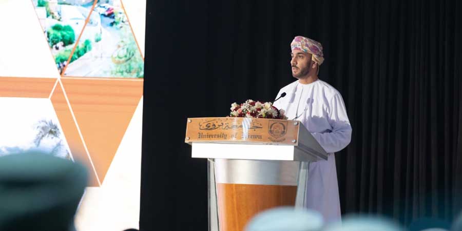 من جانبه ألقى الدكتور صالح بن منصور العزري، عميد شؤون الطلاب وخدمة المجتمع ورئيس اللجنة الدائمة للفعّاليات والمواسم الثقافية بجامعة نزوى، كلمةً أكد فيها على: