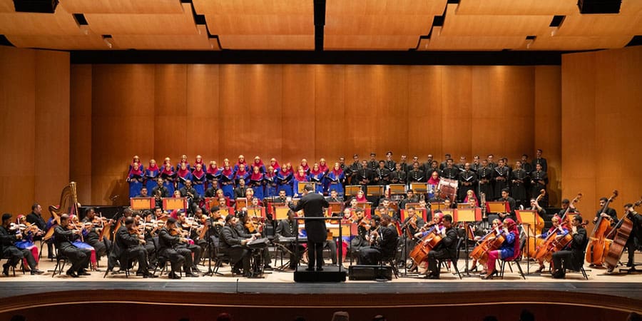 في الموسيقى الكلاسيكية الغربية والأغنية العربية التقليدية والموسيقى العالمية، وتسعى كلتا الفرقتين لإشراك الجماهير بالموسيقى الكلاسيكية الغربية، فيما تحافظ على صلتها بجذورها العُمانية وتراثها الحضاري، ومنذ ظهور الفرقتين العلني لأول مرة في دار الأوبرا السلطانية مسقط في عام ٢٠٢١م، شاركت الأوركسترا الفيلهارمونية وفريق الإنشاد الأوبرالي في مختلف القاعات في مسقط وفي أرجاء عمان، يتمتّع فريق الإنشاد الأوبرالي بعلاقة وثيقة مع دار الأوبرا السلطانية مسقط ومع العديد من المطربين الذين شاركوا كمغني الكورال في إنتاجات، مثل الناي السحري، وريجوليتو ولا ترافياتا.