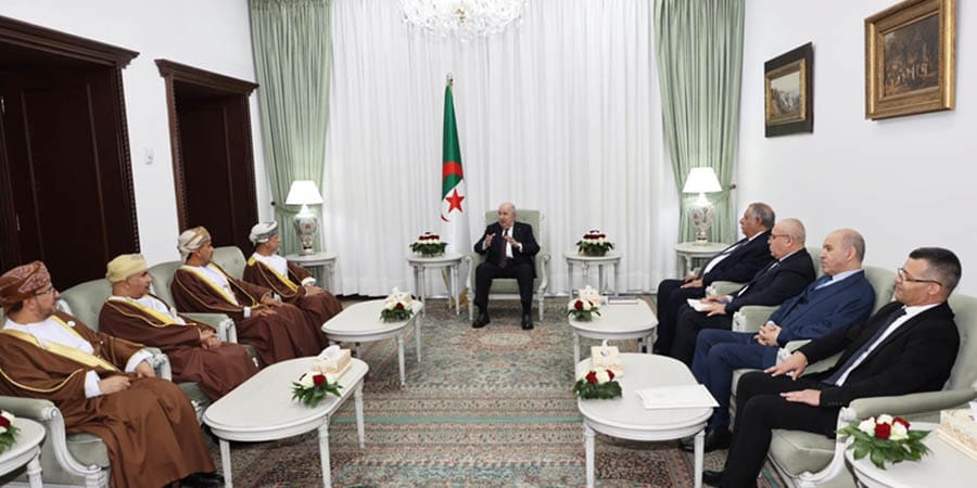 استقبل فخامة الرئيس عبدالمجيد تبون رئيس الجمهورية الجزائرية الديمقراطية الشعبية اليوم بمبنى الرئاسة بالعاصمة الجزائرية معالي عبدالسلام بن محمد المرشدي رئيس جهاز الاستثمار العماني، وذلك على هامش الزيارة الرسمية التي يقوم بها وفد رسمي عُماني إلى الجمهورية الجزائرية؛ لبحث آفاق التعاون في المجالات الاقتصادية والاستثمارية بين البلدين الشقيقين.