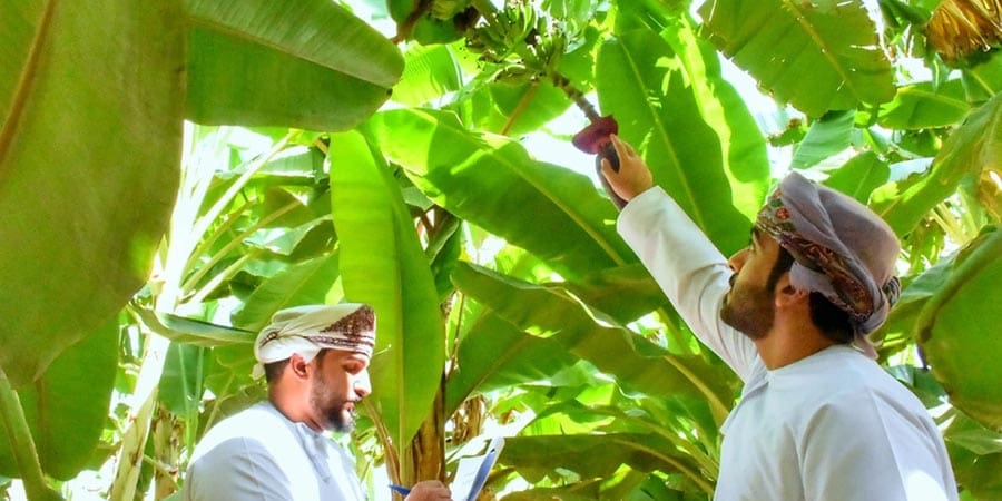 جمع جميع سلالات الموز المحلية الموجودة بجميع محافظات سلطنة عُمان وزراعتها في البنك الوراثي بمحطة البحوث الزراعية في ولاية صحار.