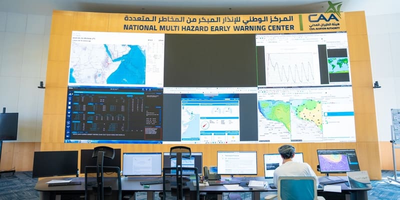 وقد تم تأسيس المركز الوطني للإنذار المبكر من المخاطر المتعددة في سنة 2004م، وفي عام 2015 تمّ تدشينه رسميًّا، إذ يُعدُّ أول مركز وطني يوفر التنبيهات والتحذيرات من عدّة مخاطر طبيعيّة في المنطقة مثل أخطار أمواج تسونامي الناتجة من الزلازل البحرية وأخطار الأعاصير والحالات المدارية، والفيضانات المفاجئة الناتجة من الحالات الجوية، حيث يتمُّ إصدار التنبيهات ونشرها عبر قنوات الإعلام ومختلف وسائل التواصل الاجتماعي لتصل إلى جميع فئات المجتمع.