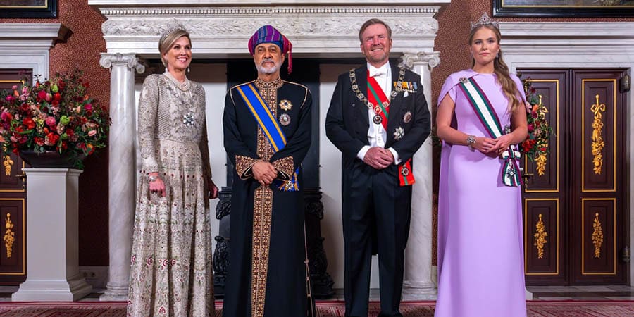 تكريمًا لحضرةِ صاحبِ الجلالةِ السُّلطان هيثم بن طارق المعظم ـ حفظهُ اللهُ ورعاهُ ـ أقام جلالةُ الملك وليام ألكسندر ملك هولندا وقرينتُه جلالة الملكة مكسيما مأدبة عشاء رسميّة على شرف جلالةِ السُّلطان المعظم بالقصر الملكي.