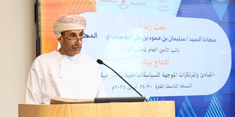 بدأت اليوم بمقر الأكاديمية الدبلوماسية التابعة لوزارة الخارجية أعمال برنامج المبادئ والمرتكزات الموجّهة للسياسة الداخلية والخارجية للدولة في نسخته التاسعة، تحت رعاية سعادة السّيد سليمان بن حمود البوسعيدي نائب الأمين العام لمجلس الوزراء، ويستمر حتى ٢٤ من أبريل الجاري.