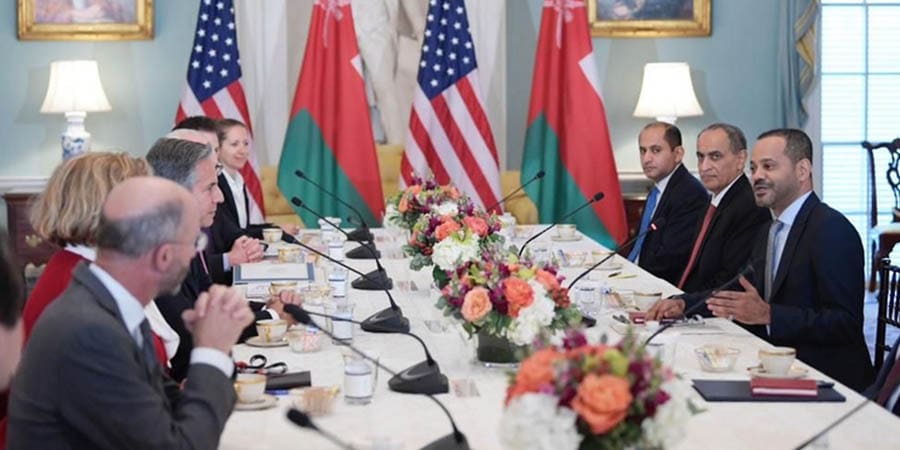الشراكة التاريخية والاستراتيجية المتنامية بين سلطنة عُمان والولايات المتحدة بشأن الأمن الإقليمي، حيث أعرب معالي انتوني بلينكن وزير خارجية الولايات المتحدة لمعالي السيد بدر بن حمد بن حمود البوسعيدي وزير الخارجية عن الشكر على دعم سلطنة عُمان الثابت للقضايا الإنسانية، بما في ذلك دورها في تأمين حرية المواطن الأمريكي باقر نمازي من إيران.