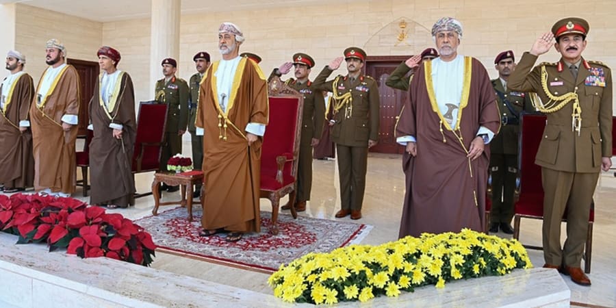 أدّت طوابير العرض التحيّة العسكريّة، وعزفت الموسيقى العسكريّة المشتركة السّلام السُّلطاني، وأطلقت مدفعية سُلطان عُمان بالجيش السُّلطاني العُماني إحدى وعشرين طلقة تحيّة لجلالتِه ـ أعزّه الله ـ.