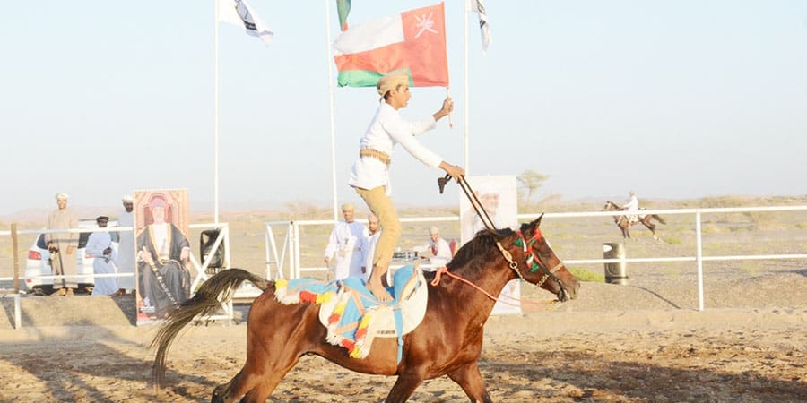 قيام المشاركين من الفرسان بحمل الأعلام العُمانية وصور جلالة السُّلطان المعظم ـ حفظه الله ورعاه ـ للتعبير عن المناسبة المجيدة وتقديم قصائد شعرية متنوعة تغنت بحب الوطن والقائد المفدى.