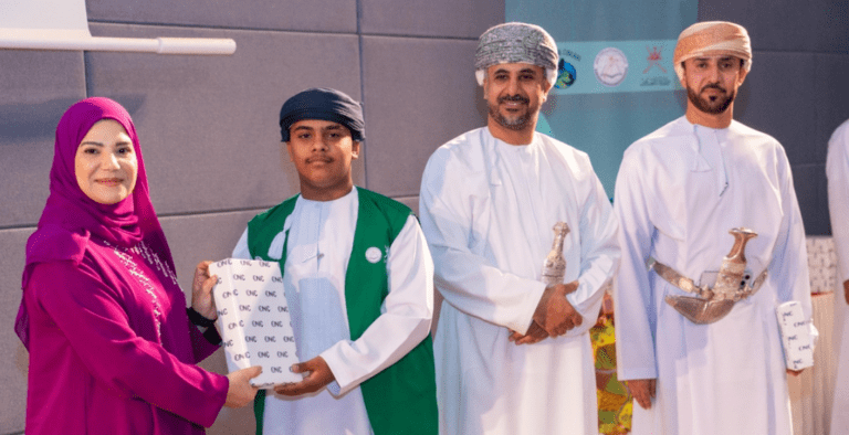 وتُوّجت مدرسة سمية للتعليم الأساسي من محافظة شمال الشرقية بالمركز الثاني، عن بحث بعنوان: “التنوع الحيوي والخصائص الطبيعية والكيميائية لفلجي النصيب والثابتي”، والذي أعدّته الطالبتان غاية بنت خليفة المسكرية وهاجر بنت علي الجفيلية.