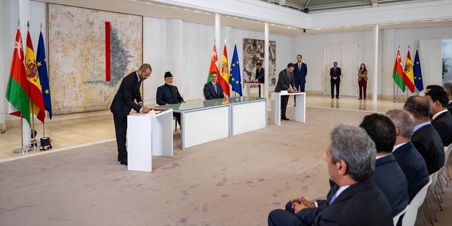 جلالةُ السلطان المعظم ورئيس الوزراء الإسباني يشهدان توقيع اتفاقية و6 مذكرات تفاهم